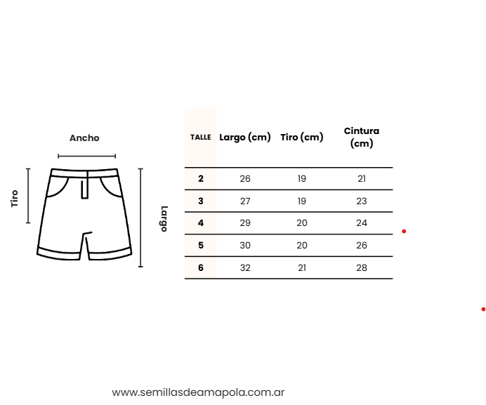 Confeccionada en resistente y suave gabardina, esta bermuda es ideal para acompañar a tu bebé en sus aventuras diarias. Disponible en talles del 2 al 6, cubriendo desde los 6 meses hasta los 32 meses aproximadamente, se adapta perfectamente al crecimiento de tu hijo.