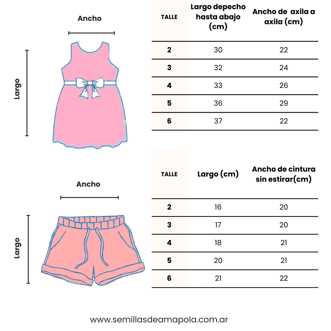 Ideal para estos días, este conjunto es una opción práctica y fresca para el guardarropa de tu bebé. No dudes en consultar nuestra guía de talles para elegir la medida perfecta.