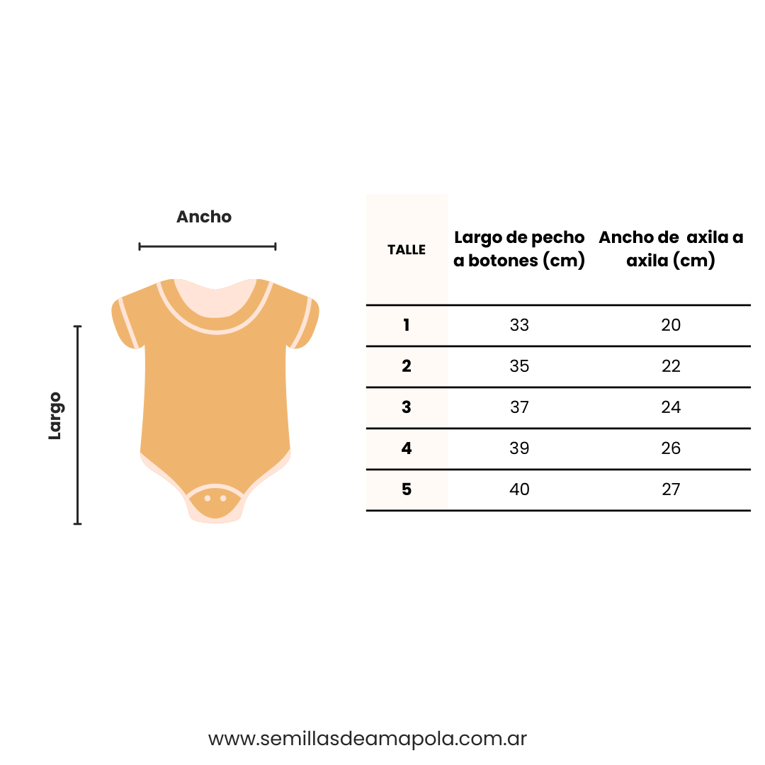 Guía de talles: Utilizala para comparar con las medidas de alguna prenda de tu bebé. Las medidas son aproximadas debido a los procesos de confección.